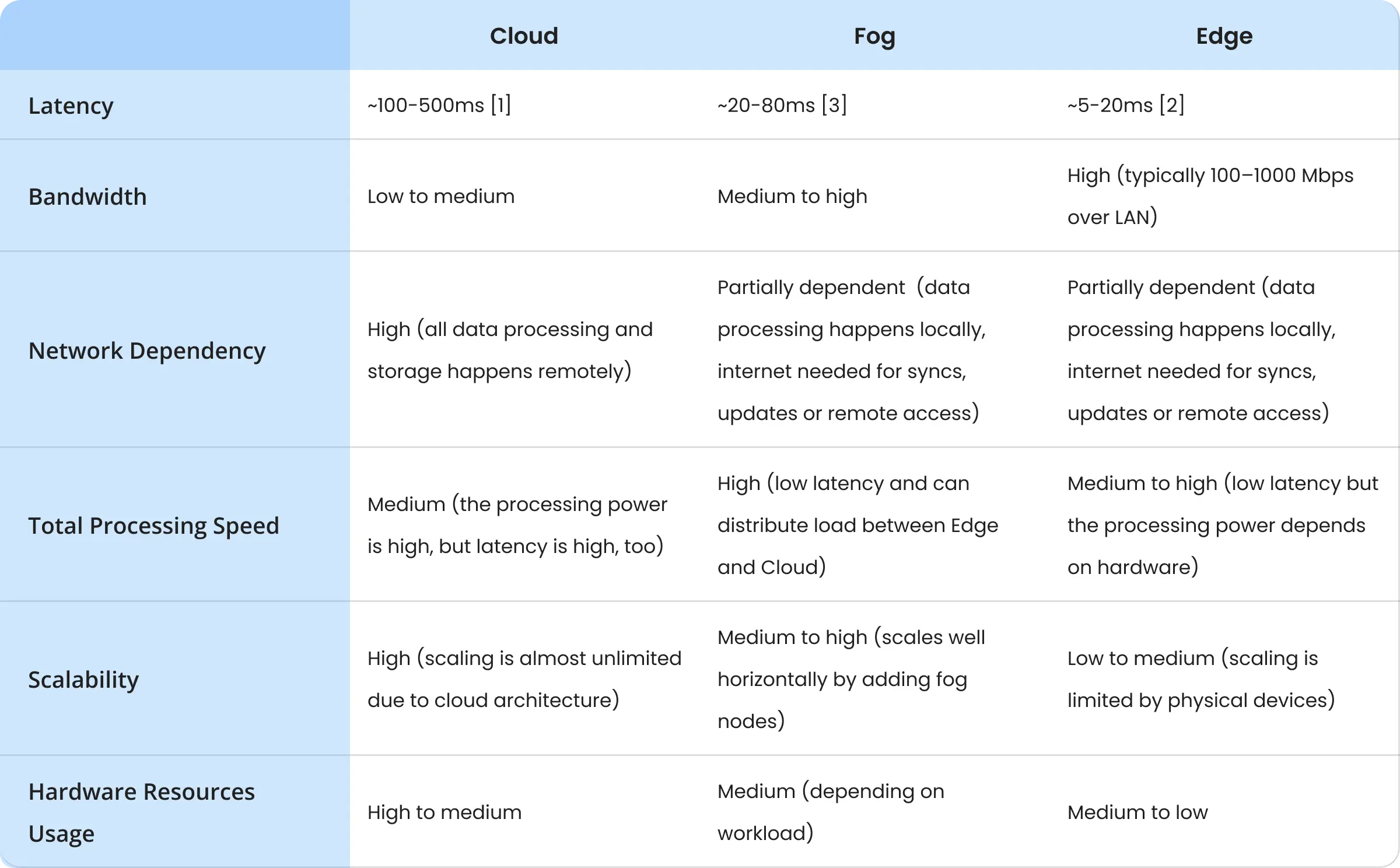 In addition to Cloud and Edge, there is also a hybrid concept known as Fog computing. It extends the capabilities of Cloud computing closer to the data source, without being at the edge of the internet itself. In short, Fog computing takes a middle ground between two extremes, being faster than cloud and more centralized than Edge.