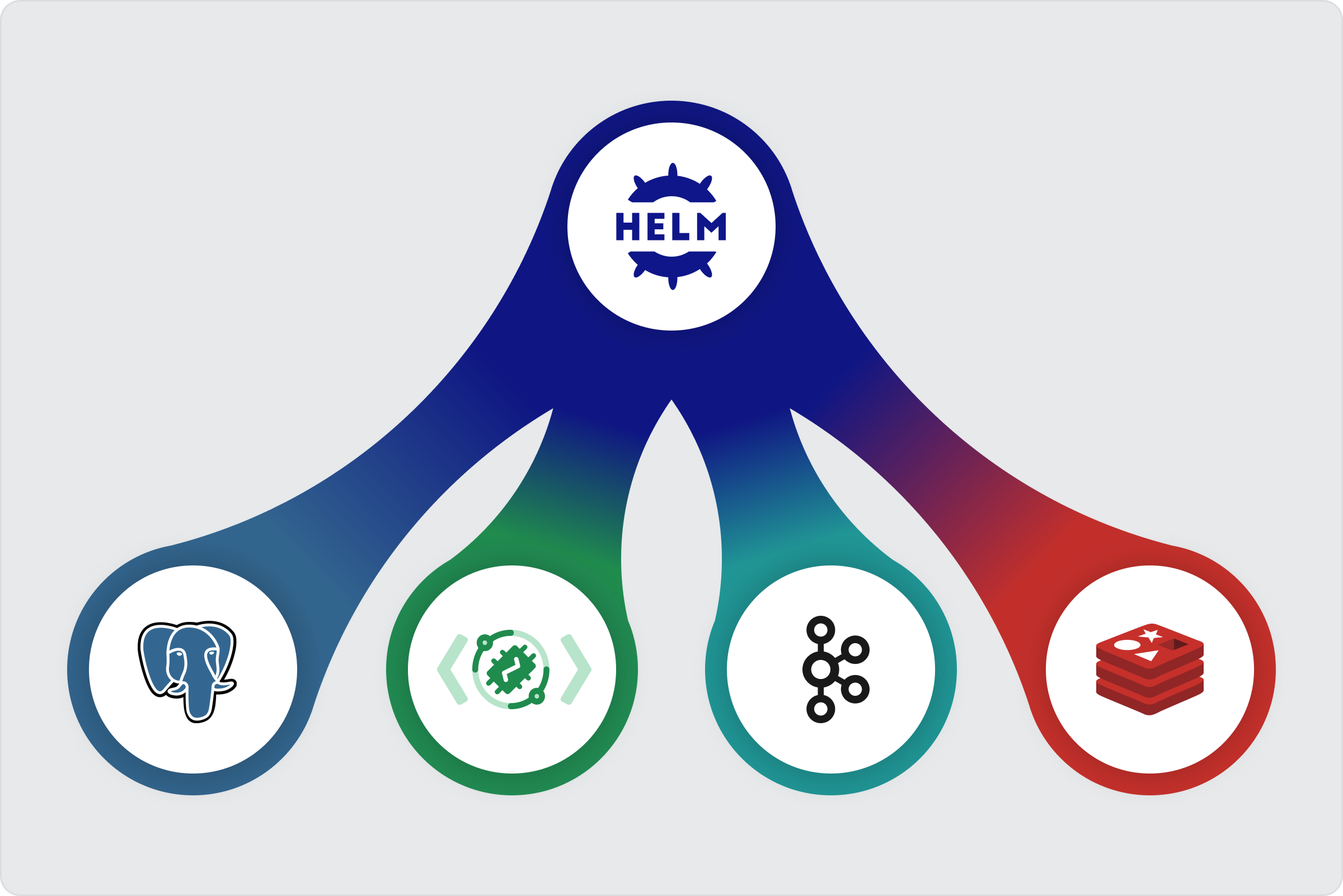 - Built-in sub-charts deployment of PostgreSQL, Redis, and Kafka.