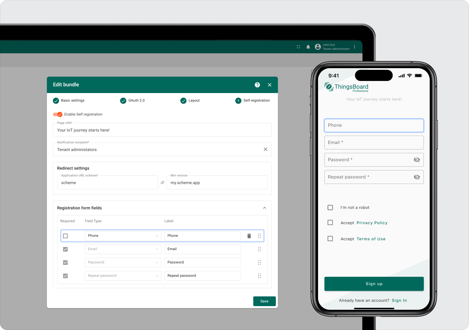 Users can now customize their mobile applications effortlessly using simple UI forms. The customization options include setting up OAuth 2.0 clients and arranging the layout of mobile app pages. The Professional Edition also provides a self-registration settings feature, allowing the setup of new customers directly via the mobile app. These settings are applicable to both Android and iOS apps, which are now organized into application bundles. Additionally, you can modify these settings in real time, without the need to release a new version of the app.