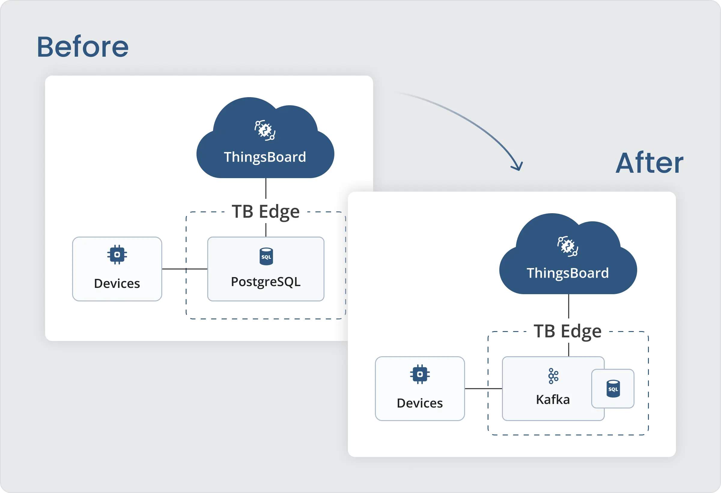 By enabling this hybrid database approach for ThingsBoard Edge, we ensure that each Edge instance can handle increasing data volumes, providing operational continuity and availability under all circumstances.