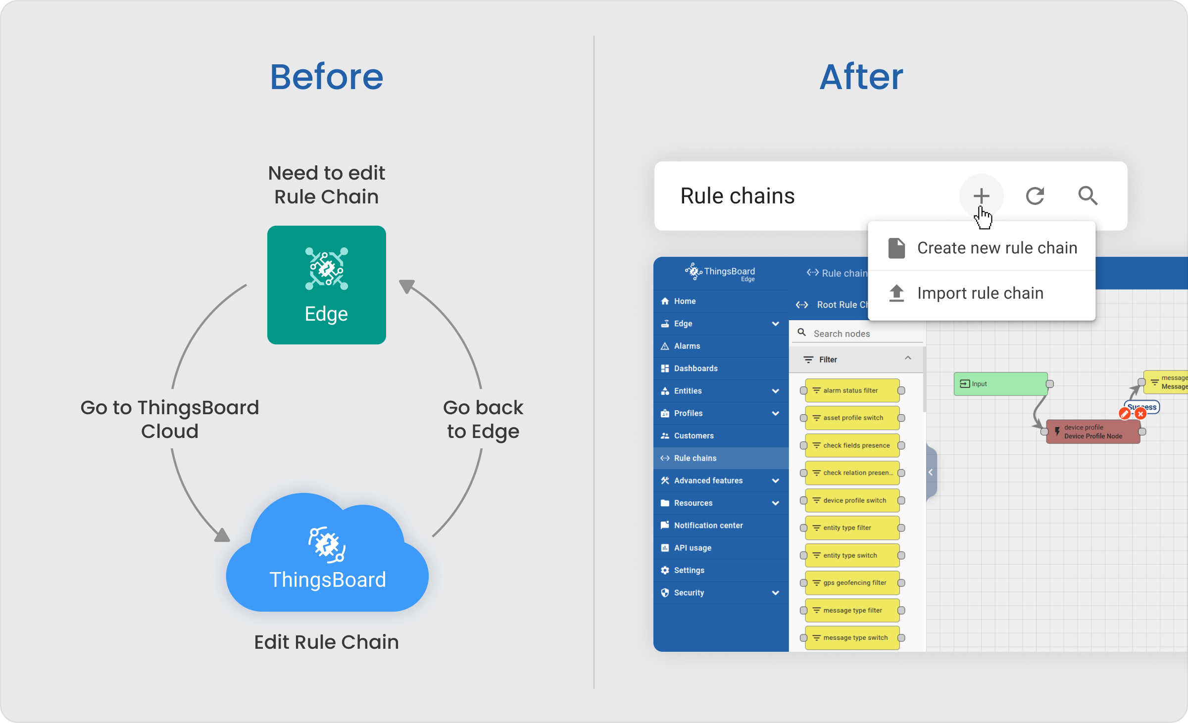 Until now, you’ve had to make a round trip from the Edge to the Cloud and back to edit and test your Rule Chains. This was a time-consuming process for teams working in real-world environments.