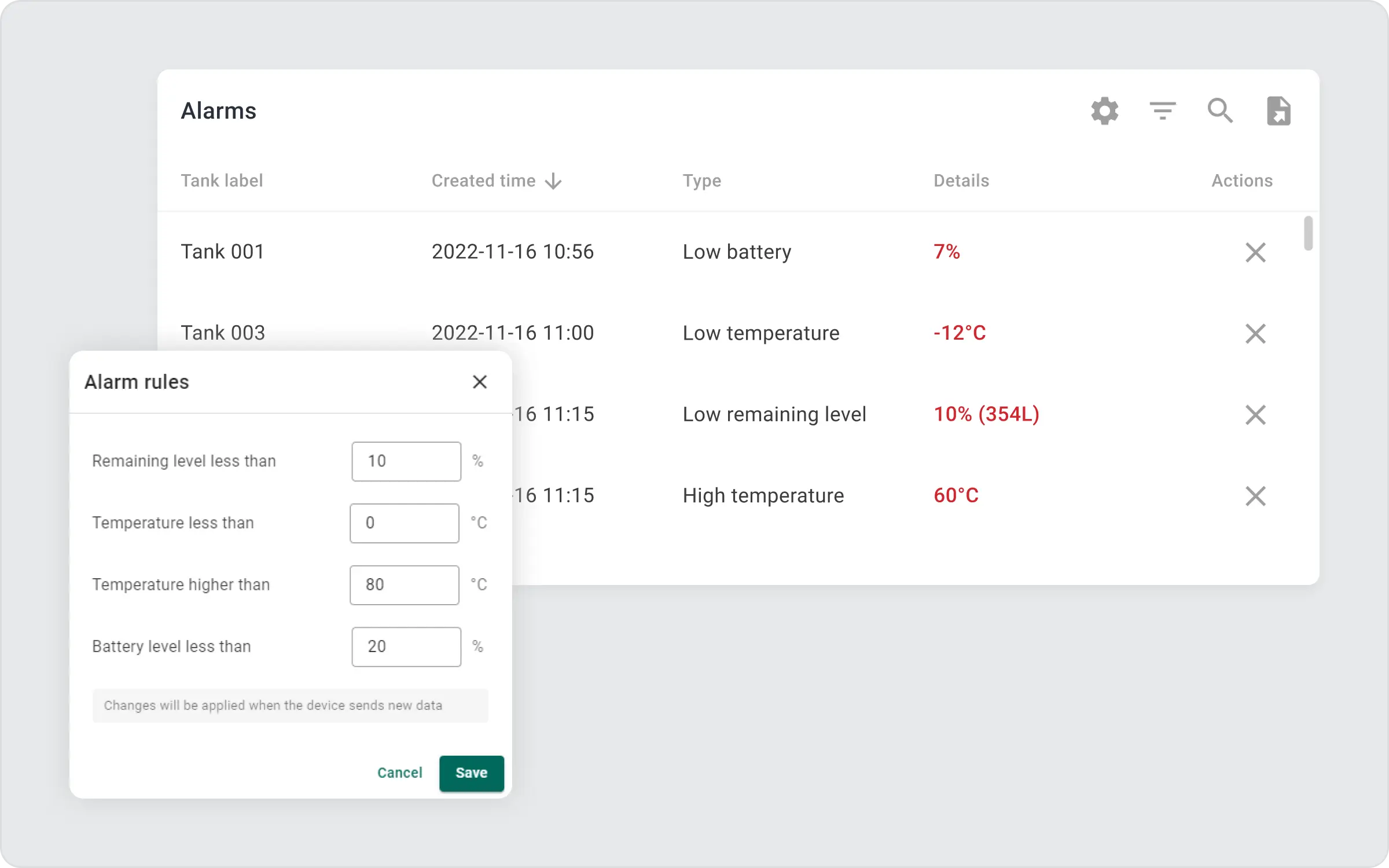 The platform also allows to customize alerts based on needs and preferences – it can notify of changes in temperature, pressure, or any other changes in the tank.